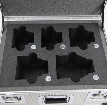 We can generate Lens Tokens to identify the lens focal length. As well as white-on-black and black-on-white we can offer an extensive colour choice.